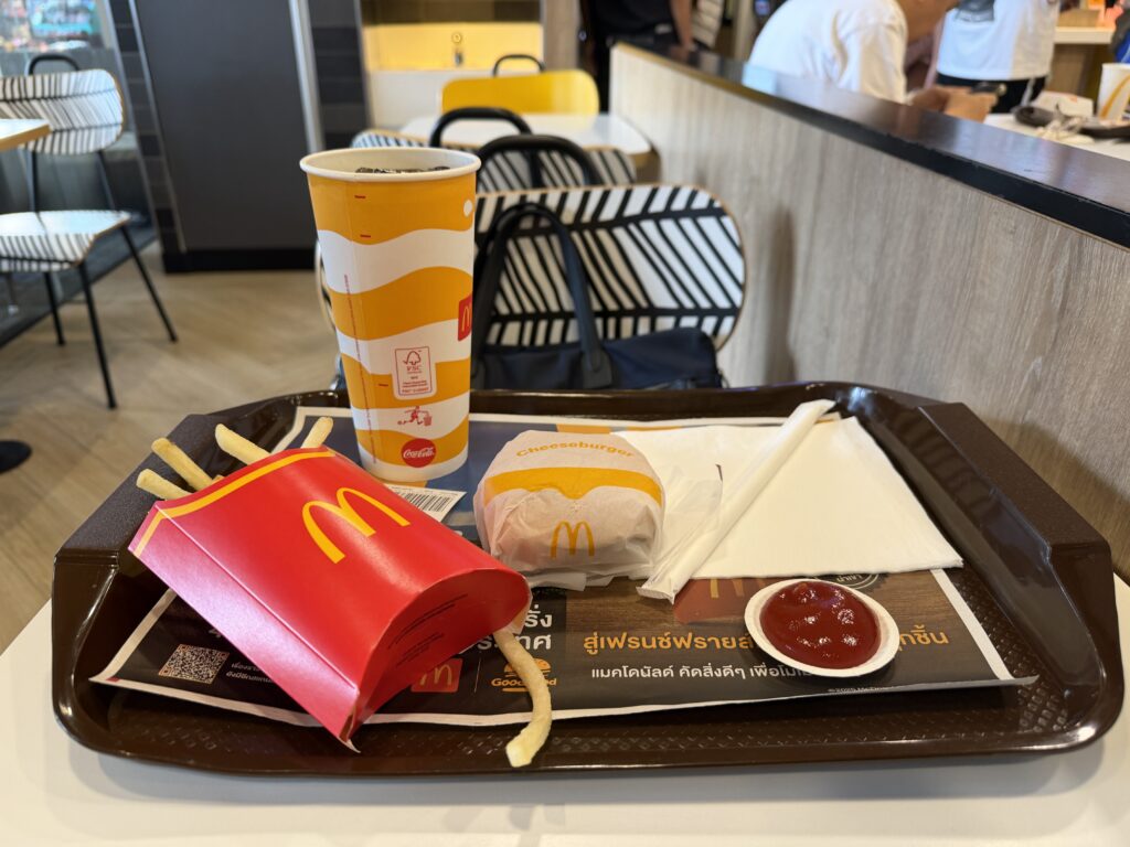 ファストフードやレストランは日本を超え始めている。サイアム地区のマクドナルドでチーズバーガーセットを頼んだら180バーツ(900円)だった。