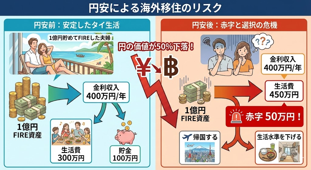 1億円の価値だって実質5,000万円に目減りしている。「物価が安い国に住む」という前提条件が覆され、5年前とは心境がまったく異なるはず。