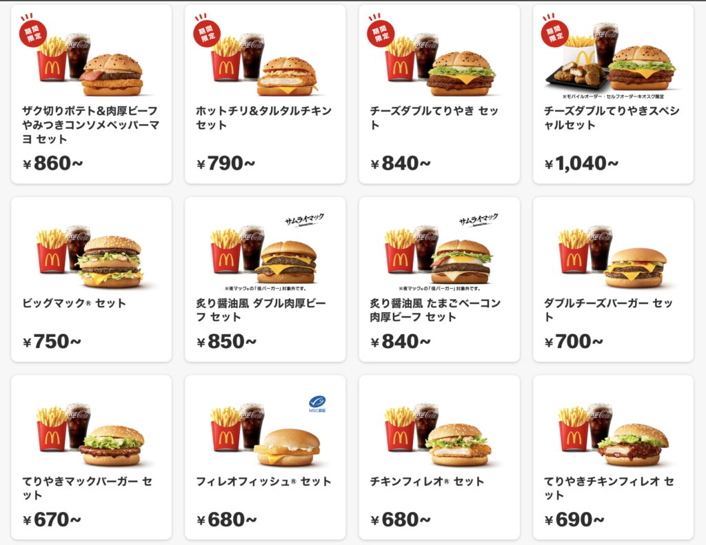 ちなみに日本マクドナルド公式サイトによると、ほとんどのセットメニュー(Mサイズ)が900円以下。